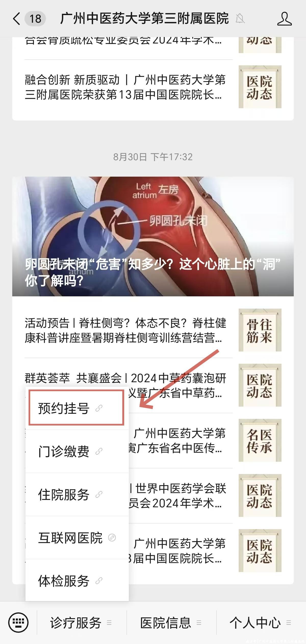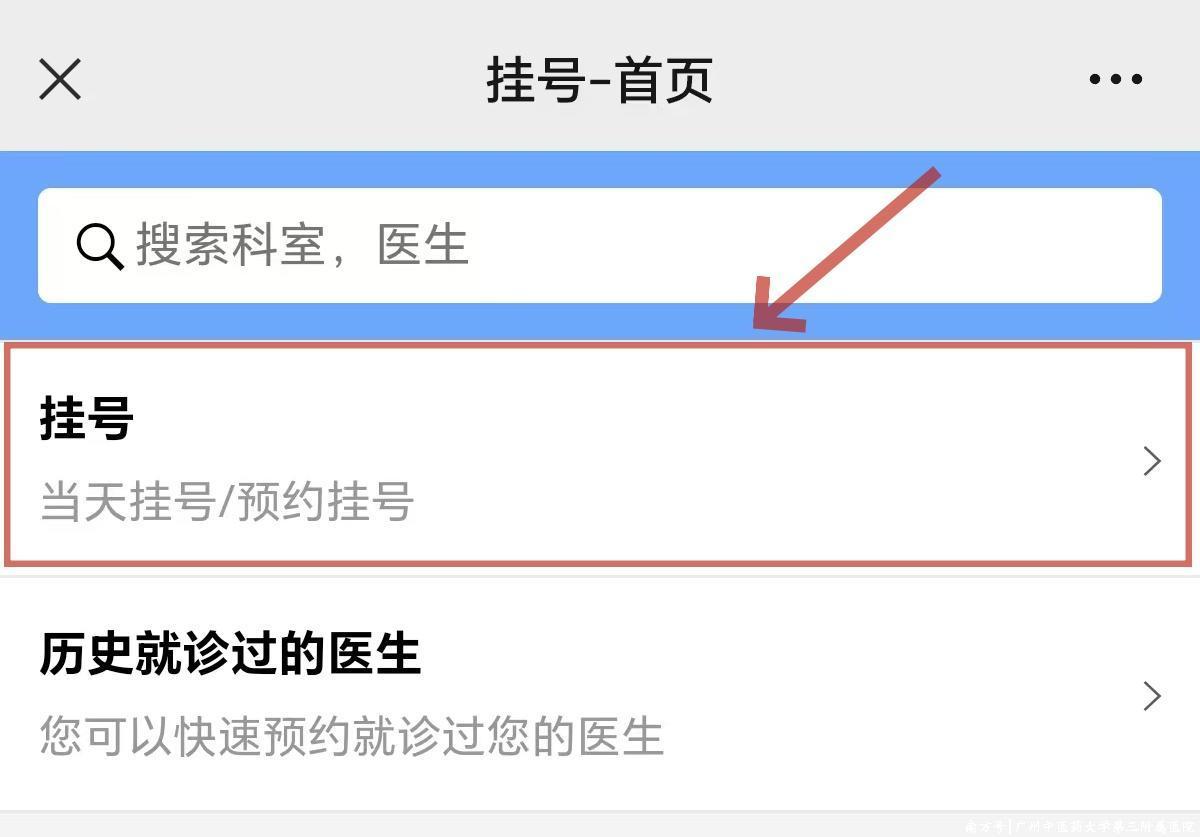 (1)关注并打开“广州中医药大学第三附属医院”公众号